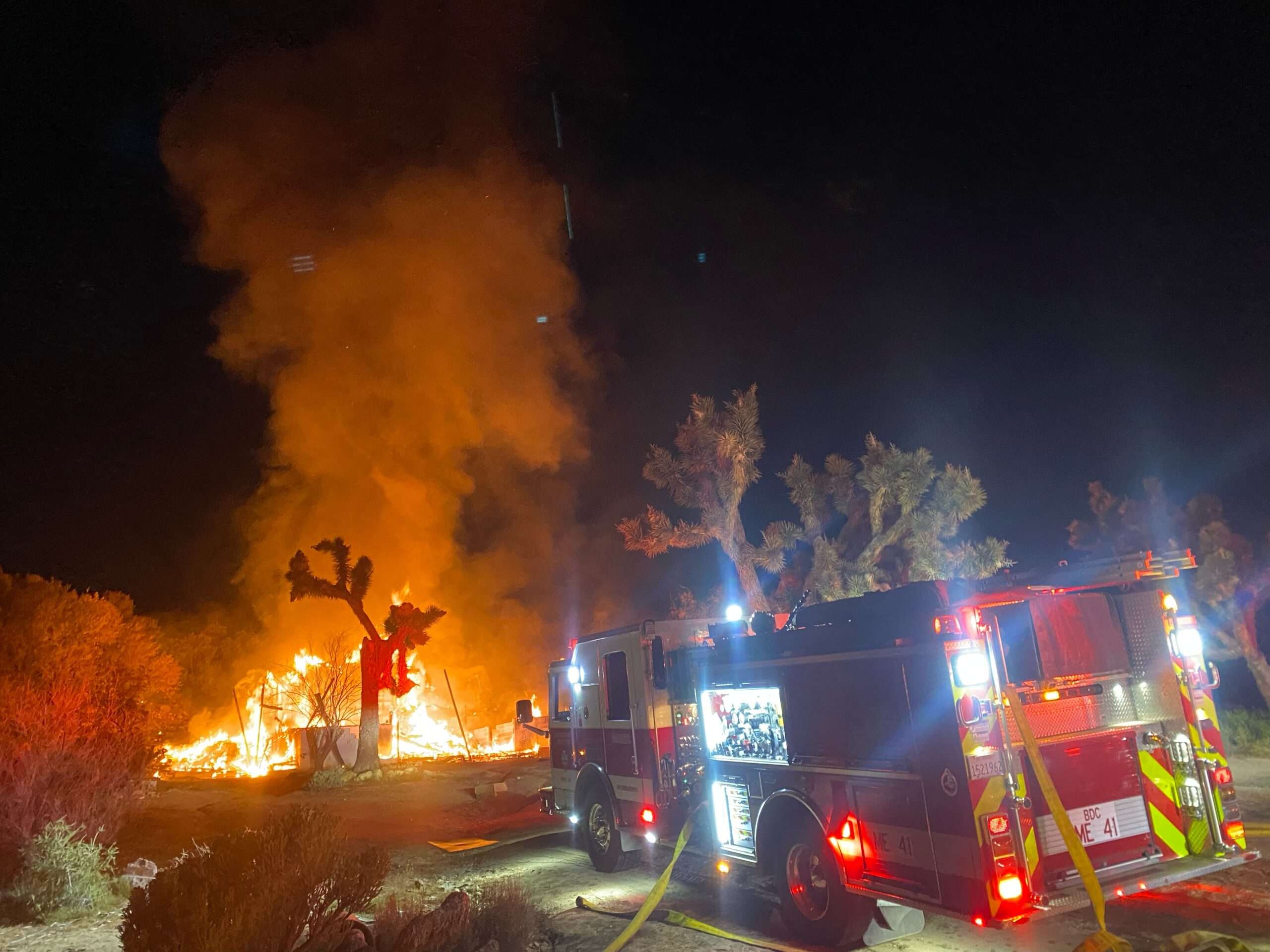 Late last night at about 10:45PM San Bernardino County Fire crews were dispatched to a reported structure fire in the area of Piñon Dr & Twentynine Palms Highway in Yucca Valley.