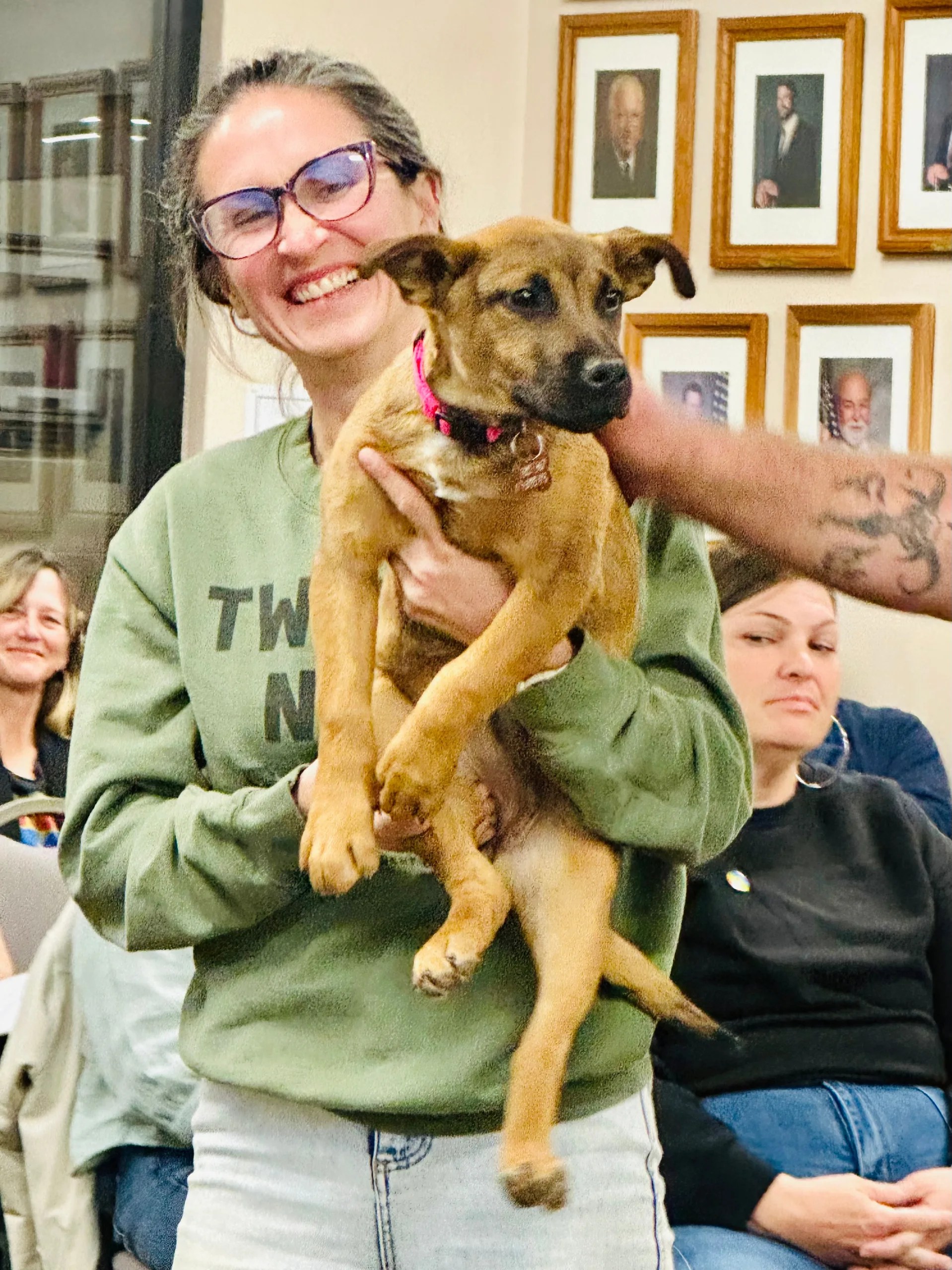 Boyd touted their success with the Wings of Rescue program, their spay/neuter clinics, the fostering program and a dedicated cadre of volunteers. Boyd was accompanied by two adorable pups – Cowboy and Nila – who are ready for adoption.