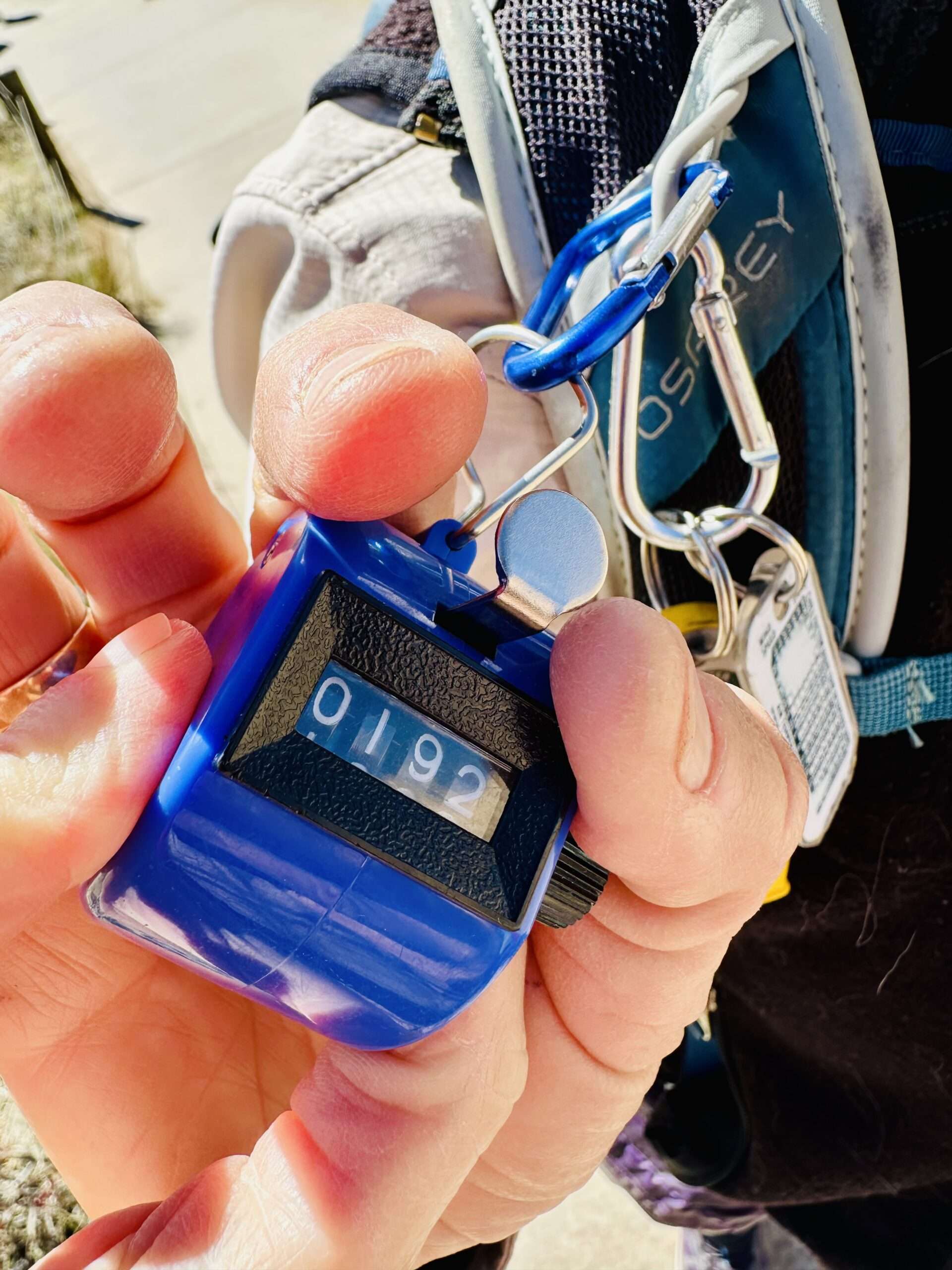 With clicker in hand to count bodies, Preventative Search and Rescue (PSAR) Volunteer Ann Murdy is on the Hidden Valley trail loop, greeting hikers with a friendly opener.