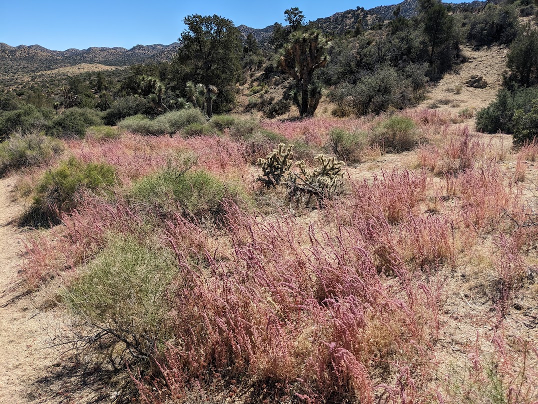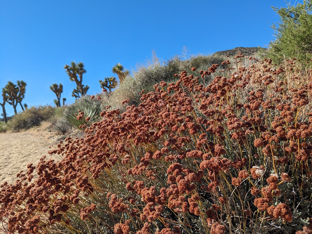 It’s yellow flower season at most elevations in the hi desert – and at the trailheads which sit around 4200 feet, blankets of chinch weed cast a golden hue as the morning light raked across them. The trailhead and crossings are well-marked by the National Park Service – and the Hi-View Nature Trail can take you anywhere from an hour or more to complete, depending on your pace.