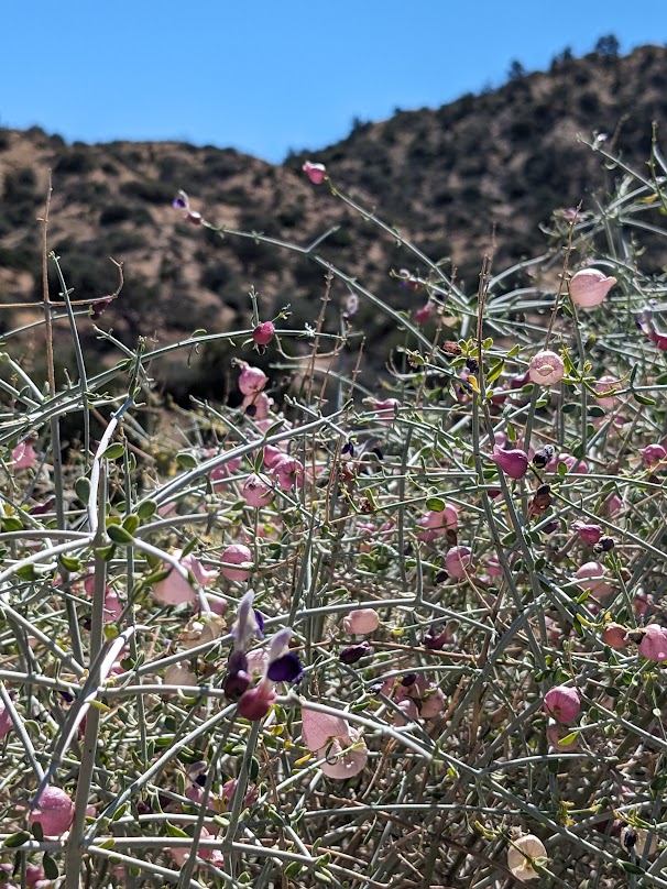 On my hike through the West Side loop, I spotted a long gopher snake sunning itself on the trail, and birds were active with Anna’s hummingbirds singing their distinct songs from their perches in pinyon pines.
